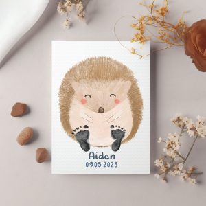 Baby Hedgehog Personalised Footprint Set For Nursery Decor